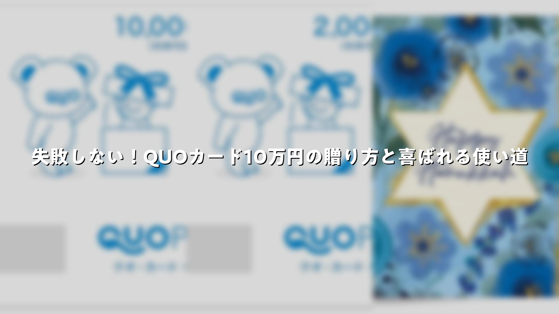特別な人への贈り物を探しているなら、QUOカード10万円は最適な選択肢です。高額なギフトだからこそ、相手に喜ばれる使い方や選び方を知ることが大切です。この記事では、QUOカード10万円をプレゼントする際のポイントや、関連する商品情報をご紹介します。